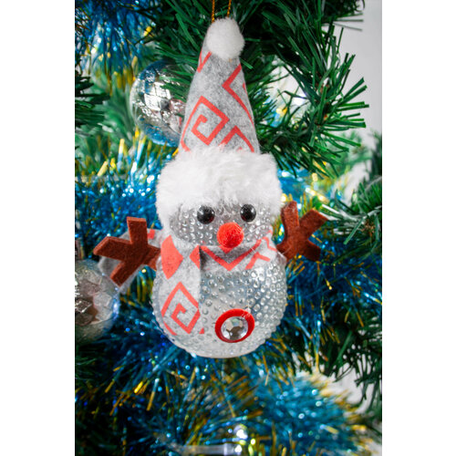 Новогодняя игрушка "Снеговик с подсветкой" в серой шапочке