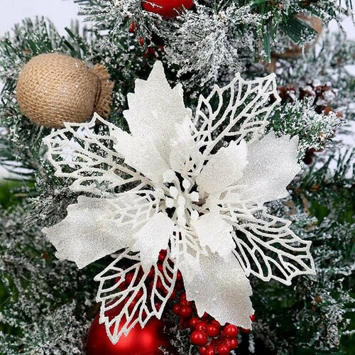 Набор новогодних "Пуансеттии" 10 см для украшения рождественской елки -