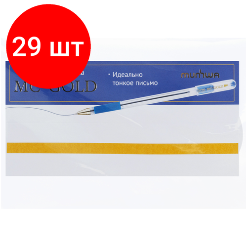 Ручка шариковая MunHwa MC Gold синяя, 0,5мм, грип, 207858, (4шт.) 100058563550