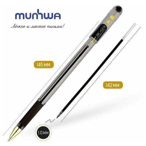 Ручка шариковая MunHwa MC Gold, резиновый грип, чернила чёрные, узел 1.0 мм