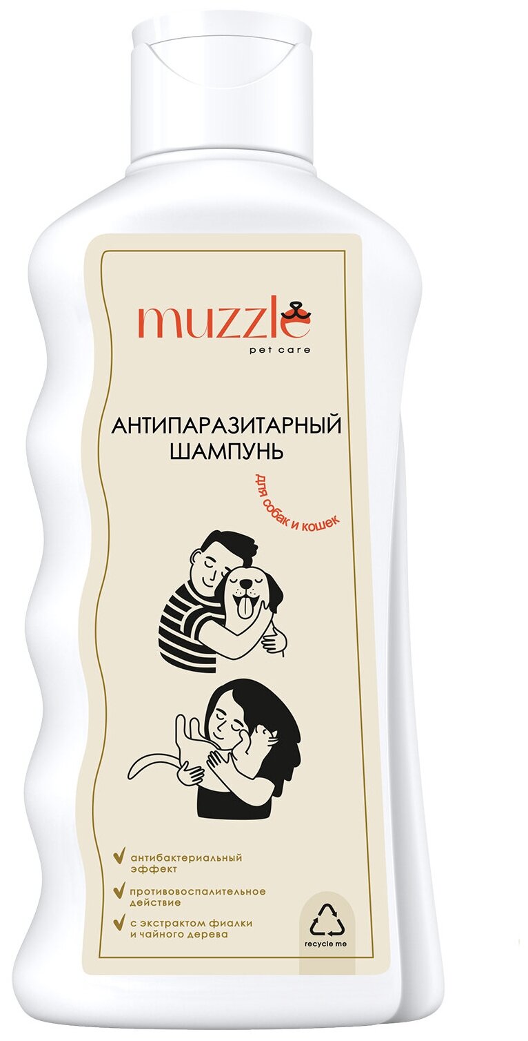 Шампунь для собак и кошек Muzzle антипаразитарный уход за шерстью и кожным покровом 250 мл Антипаразитарная