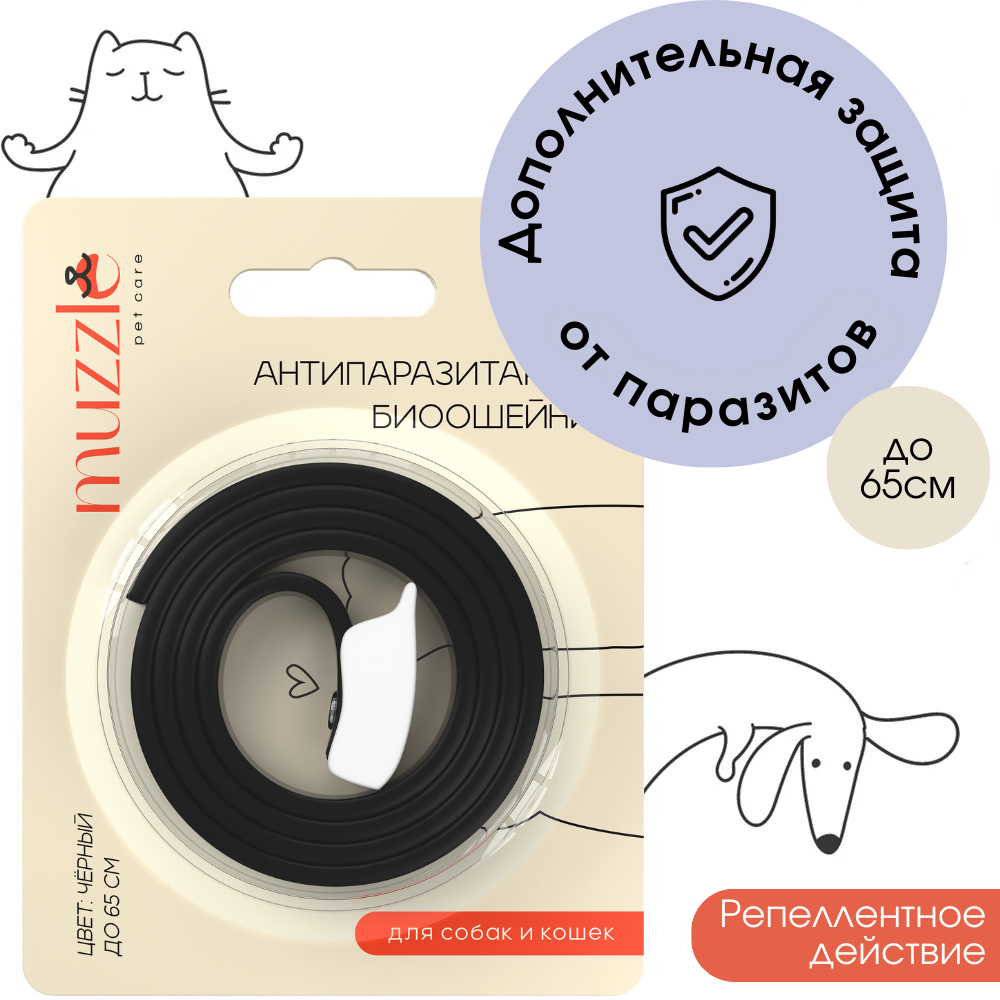 Ошейник для собак и кошек Muzzle антипаразитарный, от блох и клещей, 65 см, оранжевый ASH-BL