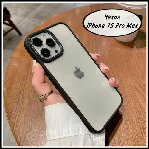 Чехол iPhone 15 Pro Max черный, противоударный силиконовый прозрачный на айфон 15 про макс