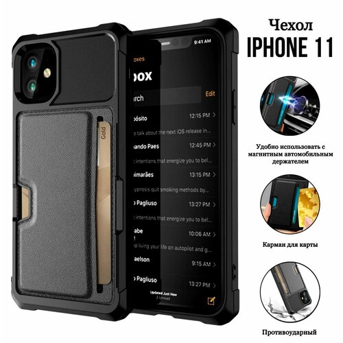 Чехол iPhone 11 картхолдер из экокожи, силиконовый ударопрочный с карманом для карты на айфон 11