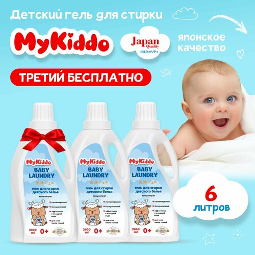 Гель для стирки детского белья MyKiddo 3 шт по 2л гипоаллергенный