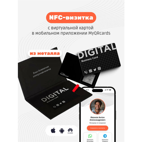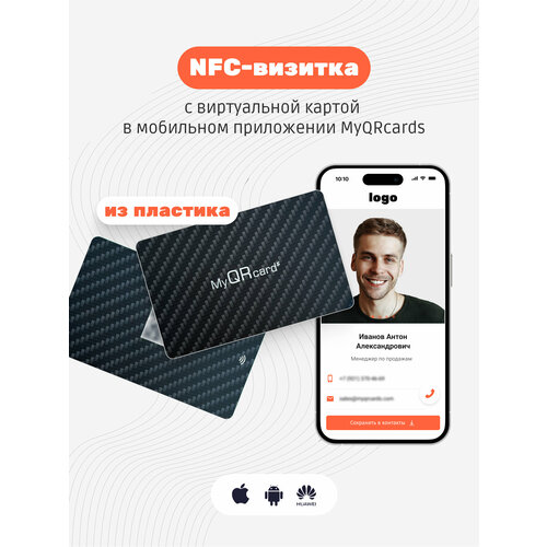 Умная электронная визитка на NFC-карте с бесплатной виртуальной картой в приложении