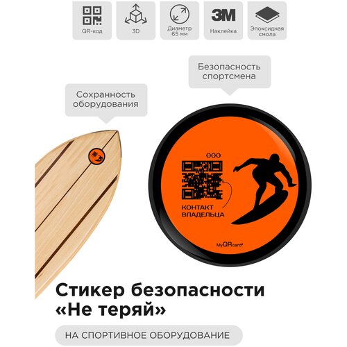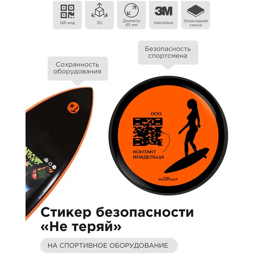3D стикер-наклейка безопасности "Не теряй" для водного снаряжения (серф) с QR - кодом