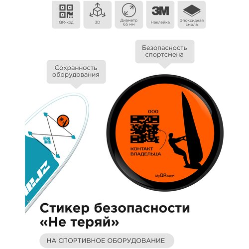 3D стикер-наклейка безопасности "Не теряй" для водного снаряжения (виндсерф) с QR - кодом