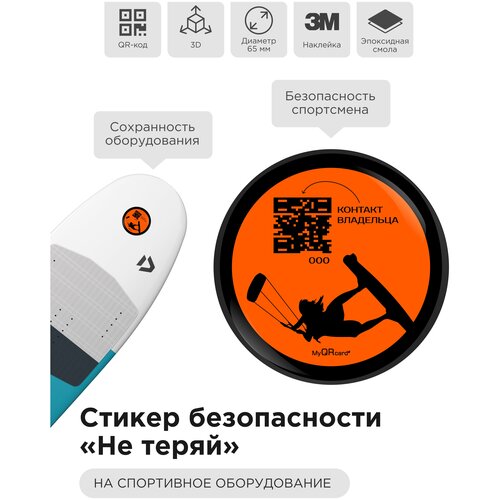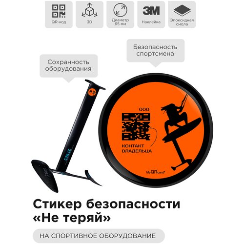 3D стикер-наклейка безопасности "Не теряй" для водного снаряжения (вингфойл) с QR - кодом