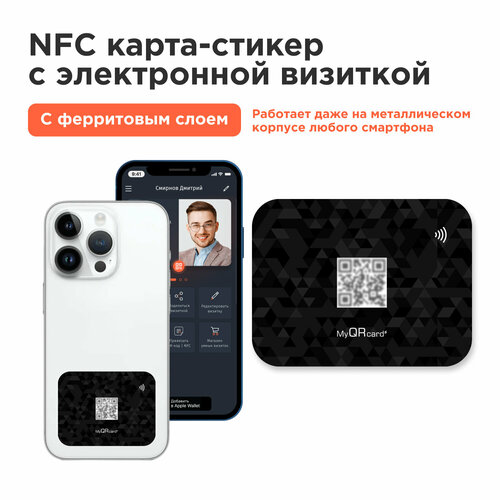 Умная электронная NFC визитка-наклейка на смартфон или карту