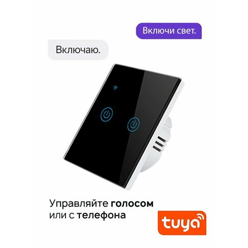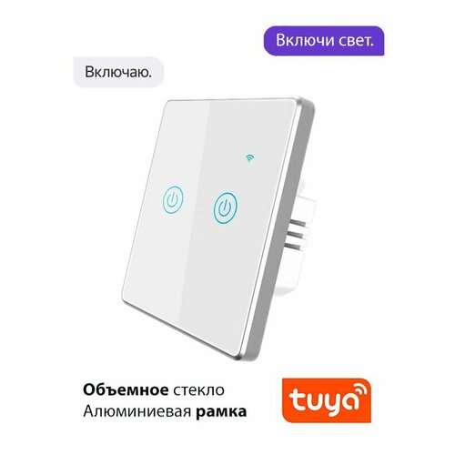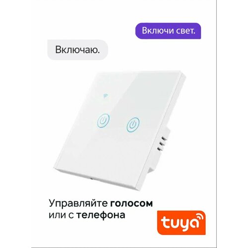 Умный выключатель сенсорный двухклавишный Wi-Fi работает с Алисой