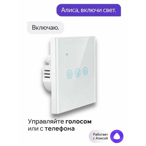 Умный выключатель Wi-Fi универсальный конденсатор в комплекте трехклавишный. Работает с Алисой.