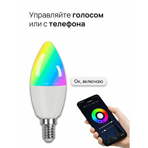 Умная лампочка RGB 5W E14 с Wi-Fi, работает с Алисой, Марусей, Google My Smart Friend