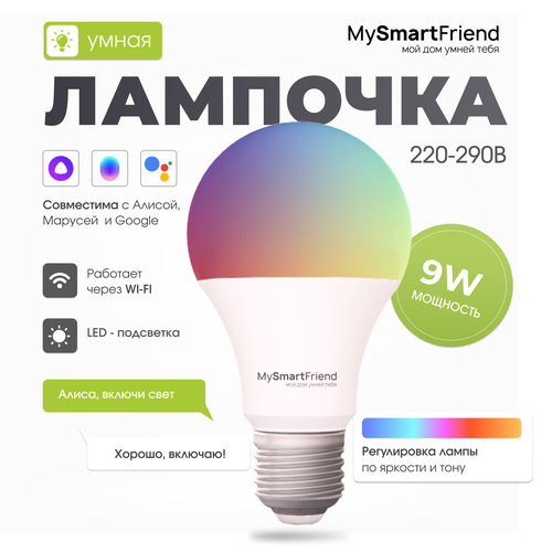 Умная лампочка RGB E27 9W Wi-Fi, работает с Алисой, Марусей, Google My Smart Friend