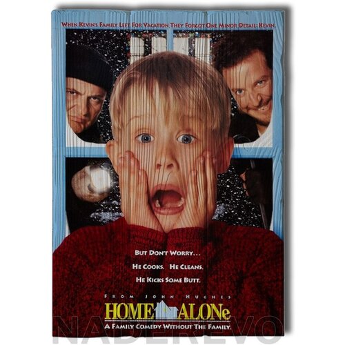 Картина на досках / дереве постер табличка "Один дома" 40х29 см