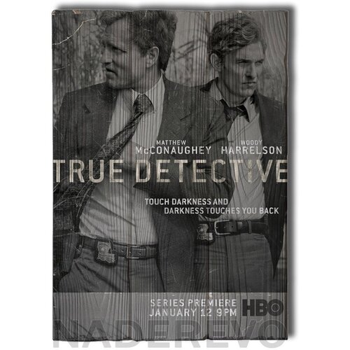 Картина на досках / дереве постер табличка "Настоящий детектив" 40х29 см