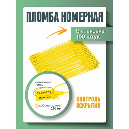 Пломба универсальная номерная 220 мм Желтая (упаковка 100 штук)