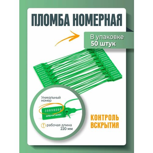 Пломба универсальная номерная 220 мм Зеленая (упаковка 50 штук)