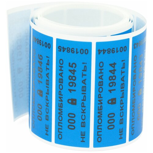 Пломба наклейка номерная 100 х 20 мм синяя (упаковка 100 штук)