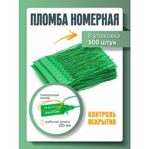 Пломба универсальная номерная 220 мм Зеленая (упаковка 500 штук)