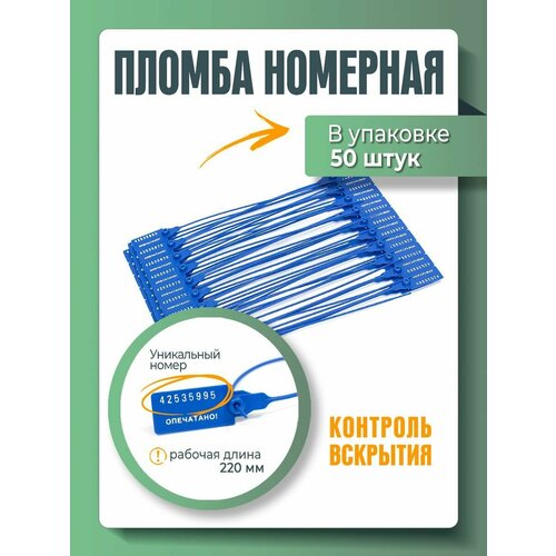 Пломба универсальная номерная 220 мм Синяя (упаковка 50 штук)
