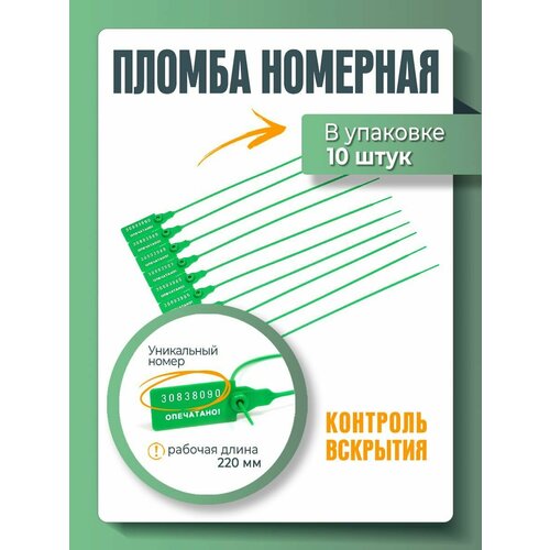 Пломба универсальная номерная 220 мм Зеленая (упаковка 10 штук)