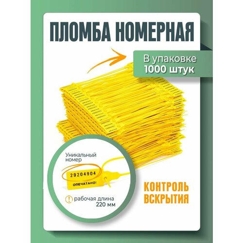 Пломба универсальная номерная 220 мм Желтая (упаковка 500 штук)