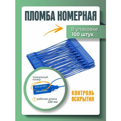 Пломба универсальная номерная 220 мм Синяя (упаковка 100 штук)