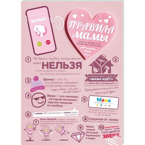 Магнит на холодильник "Правила мамы" - сувенир для декора интерьера, подарок для мамы, Размер А4 (290х210 мм), материал пластик+магнитный винил