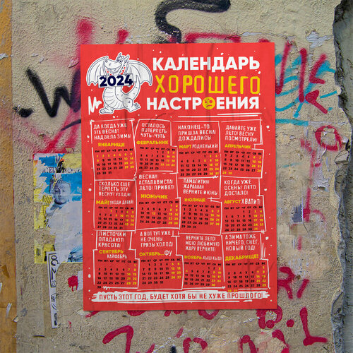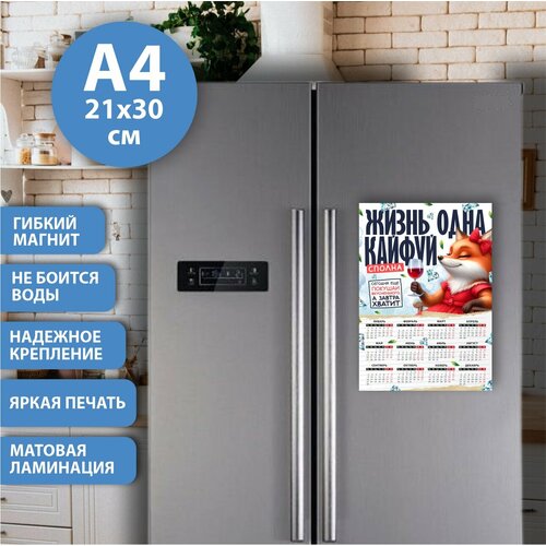 Магнит на холодильник "Жизнь одна - календарь 2024", Размер А4 (290х210 мм), материал ПВХ+магнитный винил