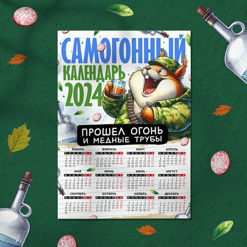 Магнит на холодильник "Самогонный календарь 2024", Размер А4 (290х210 мм), материал ПВХ+магнитный винил