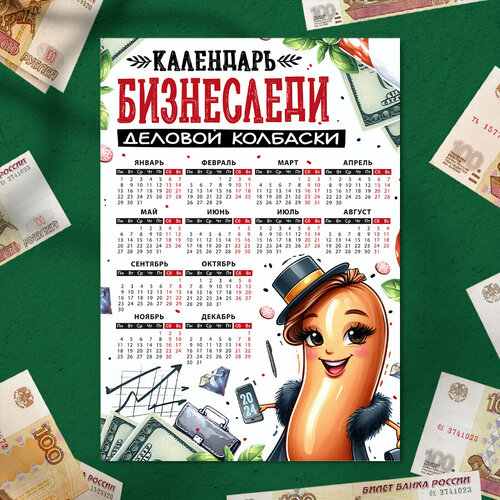 Магнит на холодильник "Календарь бизнеследи 2024", Размер А4 (290х210 мм), материал ПВХ+магнитный винил