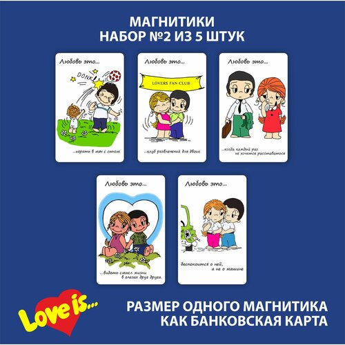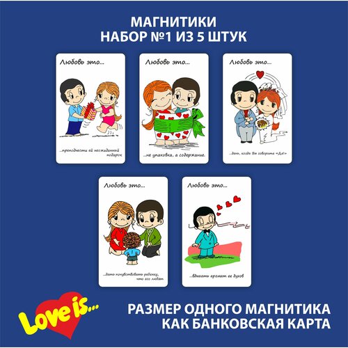 Магнитики валентинки "Любовь это." Набор из 5 штук №1, Размер одной 86х54 мм(как банковская карта), материал ПВХ+магнитный винил