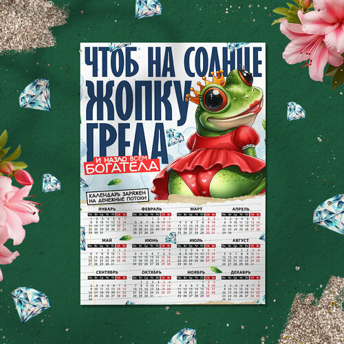 Магнит на холодильник "Календарь на богатство 2024", Размер А4 (290х210 мм), материал ПВХ+магнитный винил
