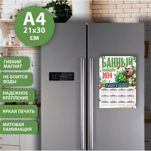 Магнит на холодильник "Банный календарь 2024", Размер А4 (290х210 мм), материал ПВХ+магнитный винил