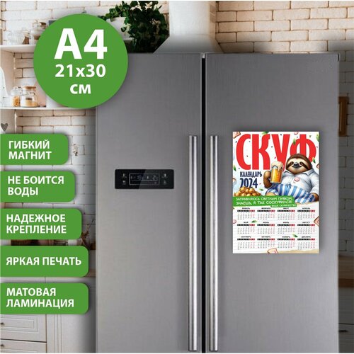 Магнит на холодильник "скуф календарь 2024", Размер А4 (290х210 мм), материал ПВХ+магнитный винил