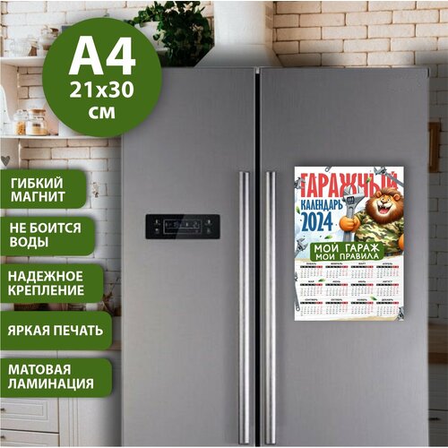 Магнит на холодильник "Гаражный календарь 2024", Размер А4 (290х210 мм), материал ПВХ+магнитный винил