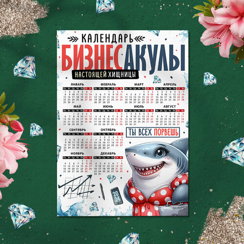 Магнит на холодильник "Календарь бизнес акулы 2024", Размер А4 (290х210 мм), материал ПВХ+магнитный винил