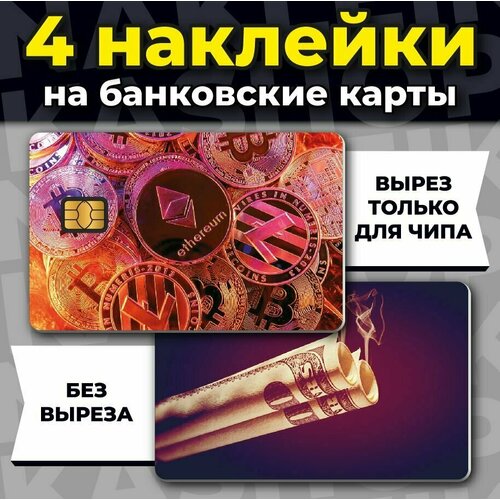 Наклейка на банковскую карту Монеты Биткоин