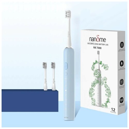 Nandme Электрическая зубная щетка Nandme NX7000, 5 режимов, АКБ, 2600 мАч, 2 насадки, голубая