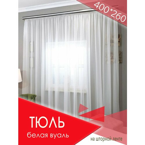 Тюль из белой вуали для комнаты/гардина naOkna/тюль для кухни, для спальни, для зала/ ширина 400см, высота 260см/ крепление - лента для крючков
