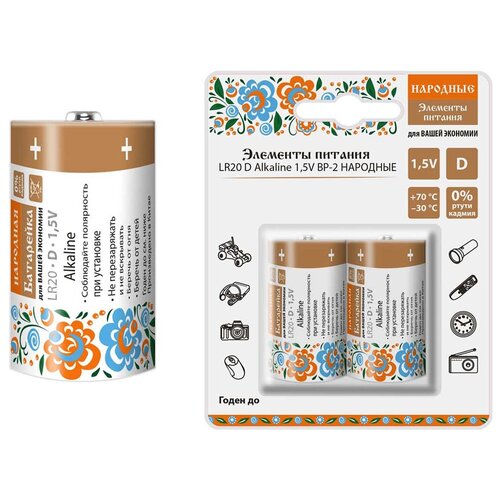 Батарейка Народная LR20, типоразмер D, 2 шт