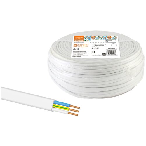 Провод бытовой ПУСП Народный, 3 x 1,5 мм², 20 м, белый