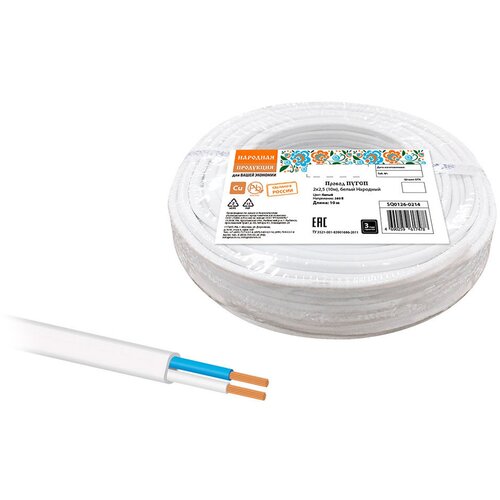 Провод бытовой ПУГСП Народный, 2 x 2,5 мм², 10 м, белый