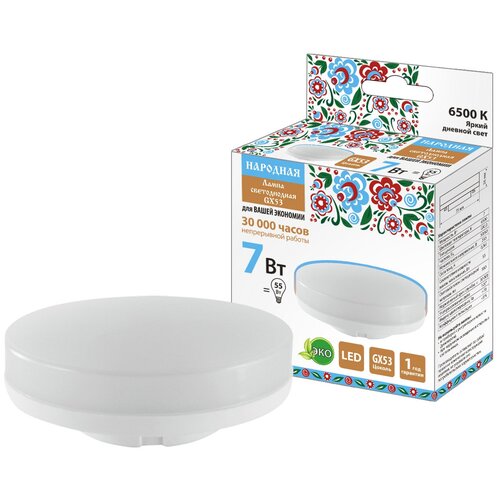 Лампа светодиодная GX53 7W 6500 К, H=26 ММ, дневной свет (1/10/100) народная SQ0340-1554