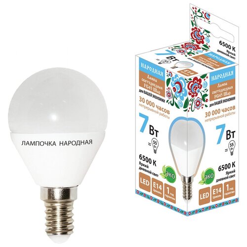 Лампа светодиодная FG45 ШАР 7W 6500 К E14, дневной свет (10/100) народная SQ0340-1549