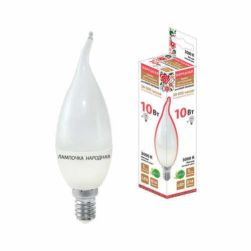 Лампа светодиодная матовая Народная Свеча, E27, FС37, 10 Вт, 3000 K, теплый свет
