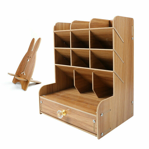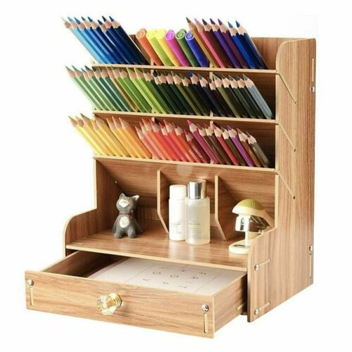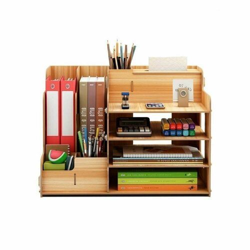 Большая настольная деревянная подставка органайзер для канцелярских принадлежностей, тетрадей, книг, папок, карандашей, ручек, фломастеров