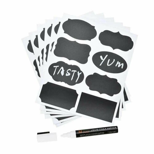 Набор самоклеящихся этикеток для банок бутылок специй и контейнеров с фломастером маркером (48 шт. + карандаш), Декоративные этикетки для банок