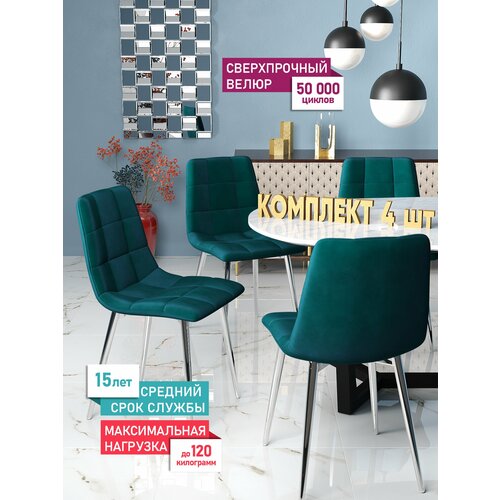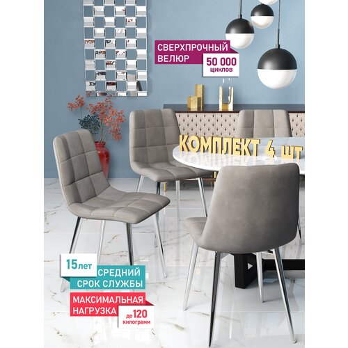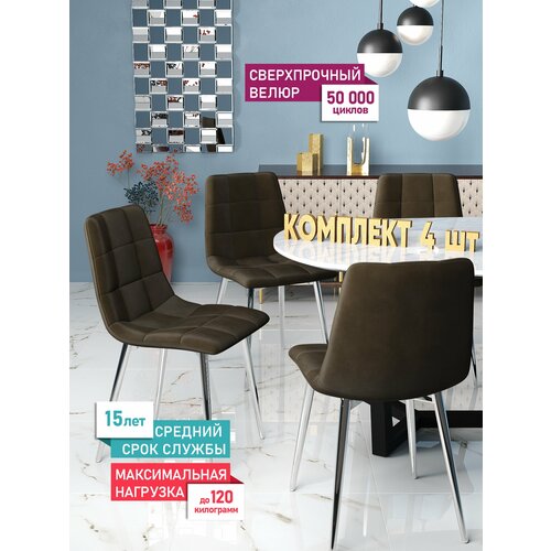 Комплект стульев для кухни Чили 4 шт, велюр Holland, каркас хромированный
